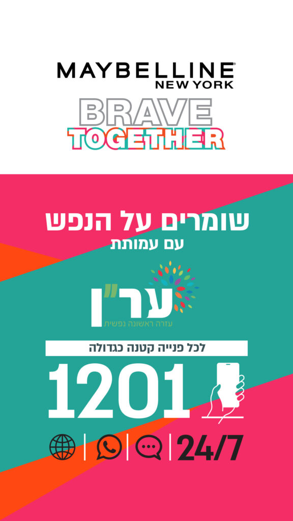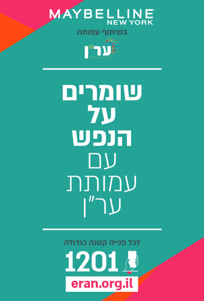 מותג האיפור הבינלאומי מייבלין ניו-יורק יוצא בישראל בקמפיין חברתי בשיתוף עמותת ער"ן – עזרה ראשונה נפשית, במטרה להעלות את המודעות לתופעות של אלימות ברשת, חרדה ודיכאון, בקרב צעירים ובני נוער ולעודד שיח פתוח על הנושא.