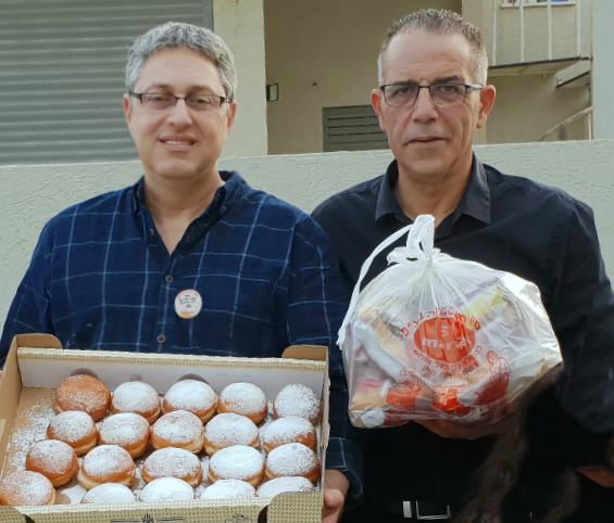 אבי חיים מ"מ וסגן ראש עיריית ראשון לציון צירף את מיקי אלון יו"ר האגודה למען החייל בעיר למבצע חלוקת סופגניות לילדים ממשפחות קשות יום.